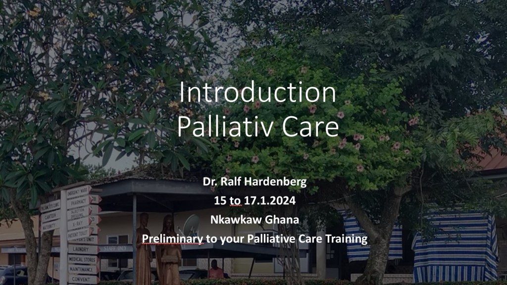 I am trying to establish a long-term partnership with palliative care in Nuremberg. This would be a great opportunity for an exciting intercultural exchange at eye level. In palliative medicine, the principle is: high person – low technology. At last, no insurmountable technological obstacle! „High person“ exists in Nkawkaw, and not just numerically.